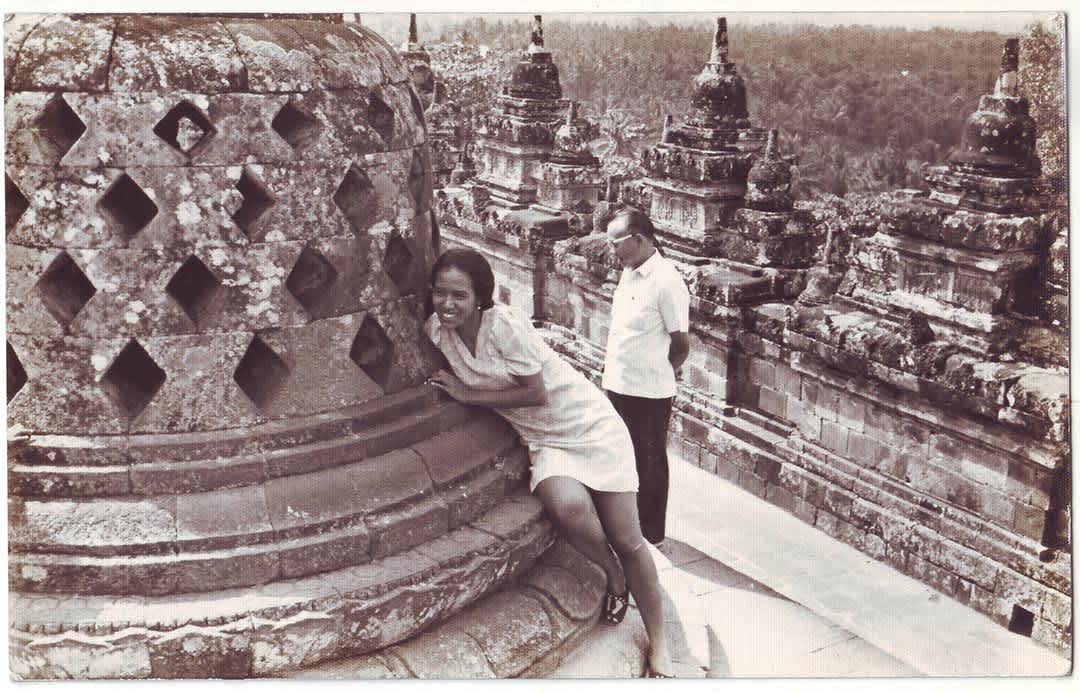Arsip Unhistoried menunjukkan destinasi favorit keluarga Indonesia meliputi situs prasejarah, pesona alam, dan monumen penting. Tercakup dalam Tujuh Keajaiban Dunia, Candi Borobudur kerap terekam, mulai dari foto hitam putih buatan 1970-an hingga foto berwarna bertarikh 1980-an. Pada beberapa lembar foto terlihat orang-orang yang berupaya menyentuh patung Buddha di dalam stupa Borobudur. Mitos semacam ini ternyata berjejak panjang.
