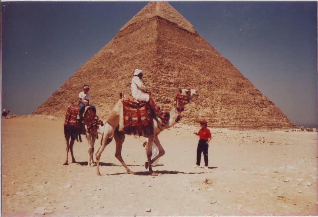 Atraksi menunggang unta di Piramida Giza, Mesir, pada 1989.